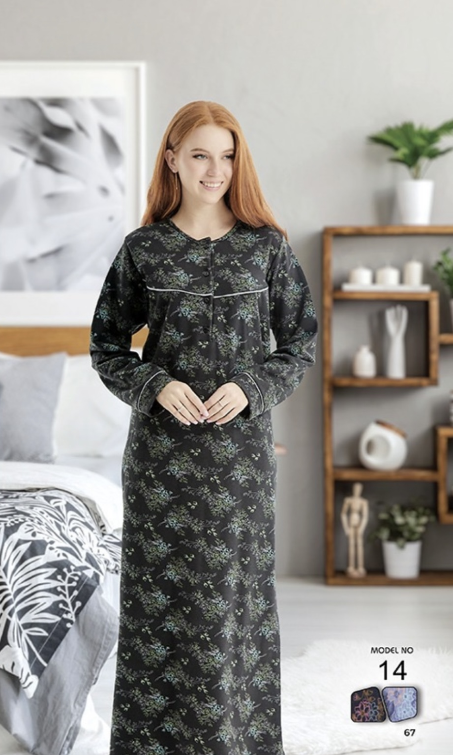 قميص حريمي شتوي قطن 100% ميلتون رمادي بنقشة زهور